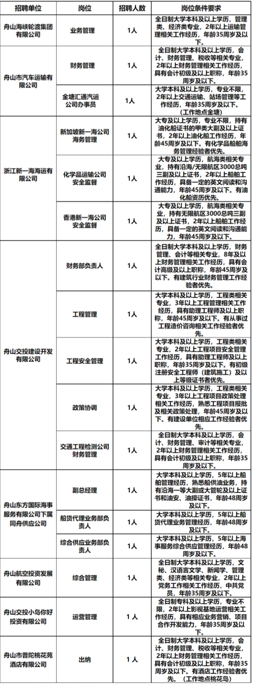 聯(lián)系人:舟山交通投資集團(tuán)有限公司人力資源部李女士。