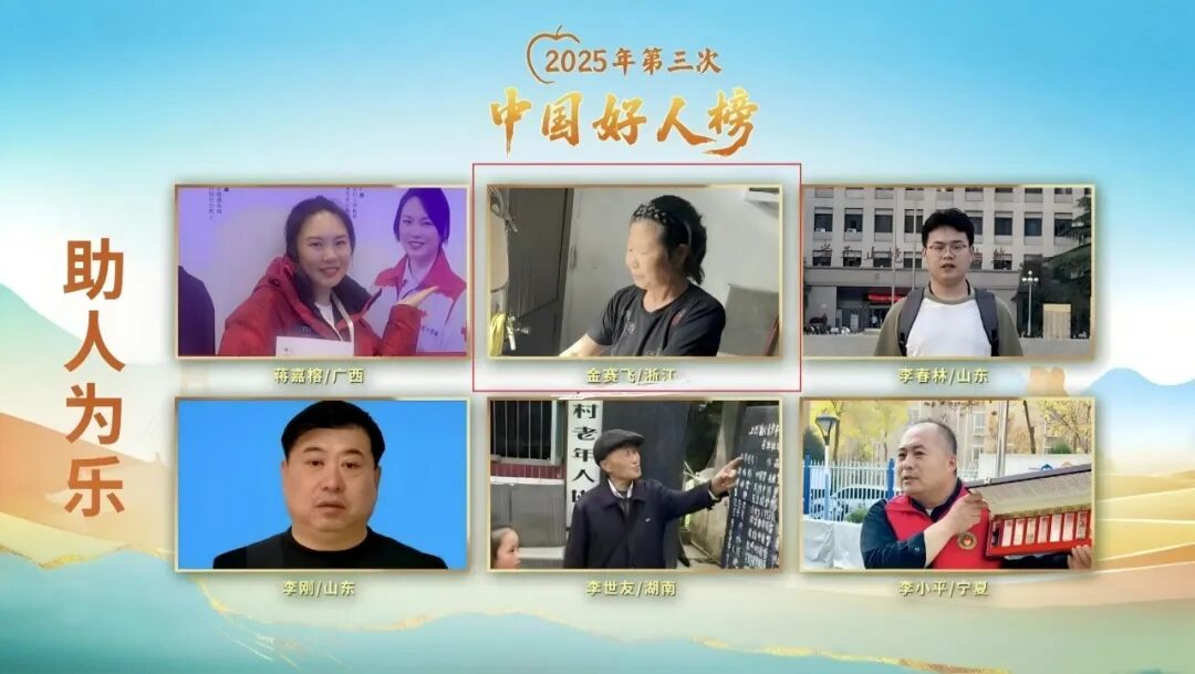 昨天,中央文明辦發(fā)布2025年第3次“中國好人榜”,我市金賽飛獲評助人為樂“中國好人”。記者從市文明辦了解到,截至目前,我市共有中國好人25例、浙江好人193例。