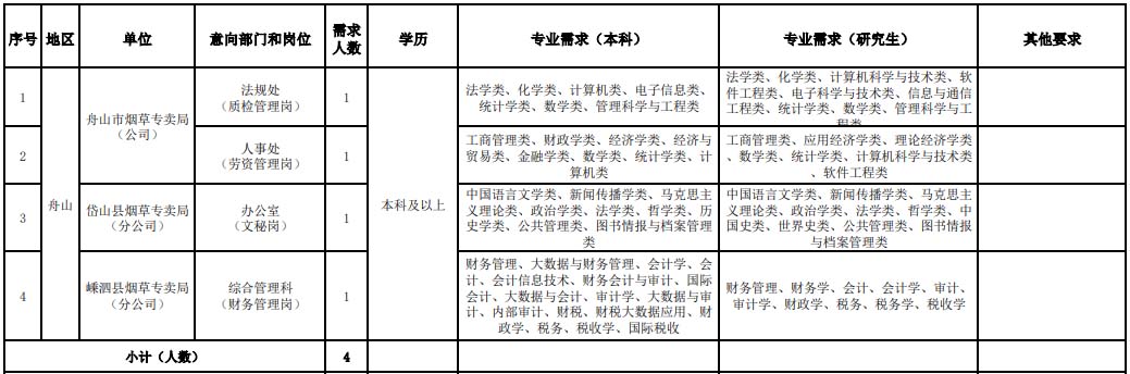 本次共計(jì)招聘59人,其中舟山4人。具體招聘單位、崗位及相關(guān)要求,詳見《2026年招聘計(jì)劃表(管理類)》(附件1)。