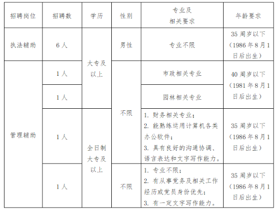 (三)崗位不限戶籍;執(zhí)法輔助崗位要求男性,管理輔助崗位性別不限。