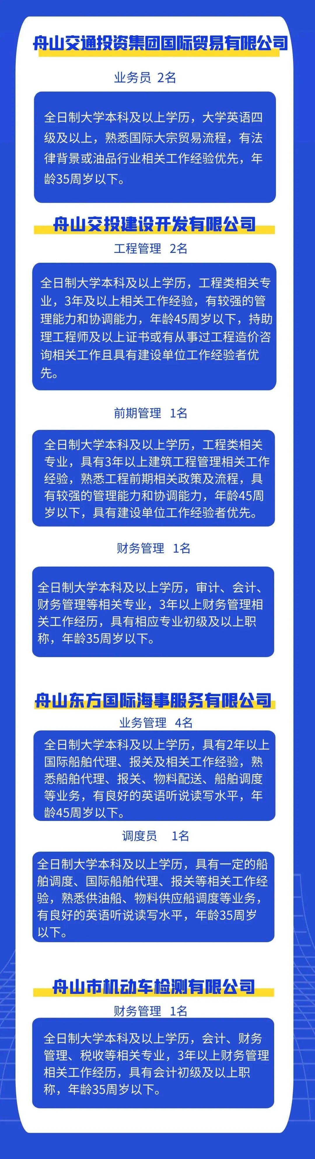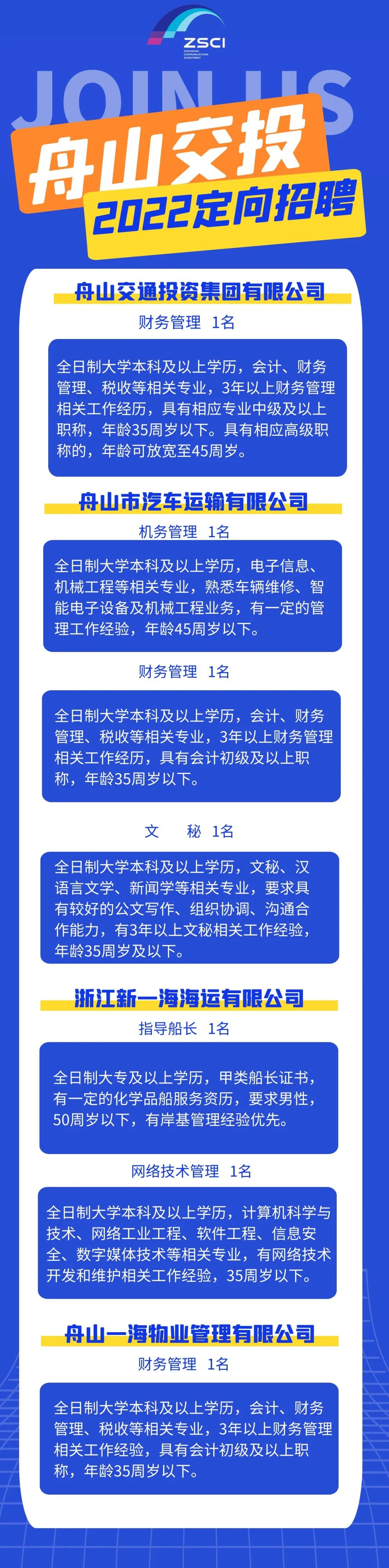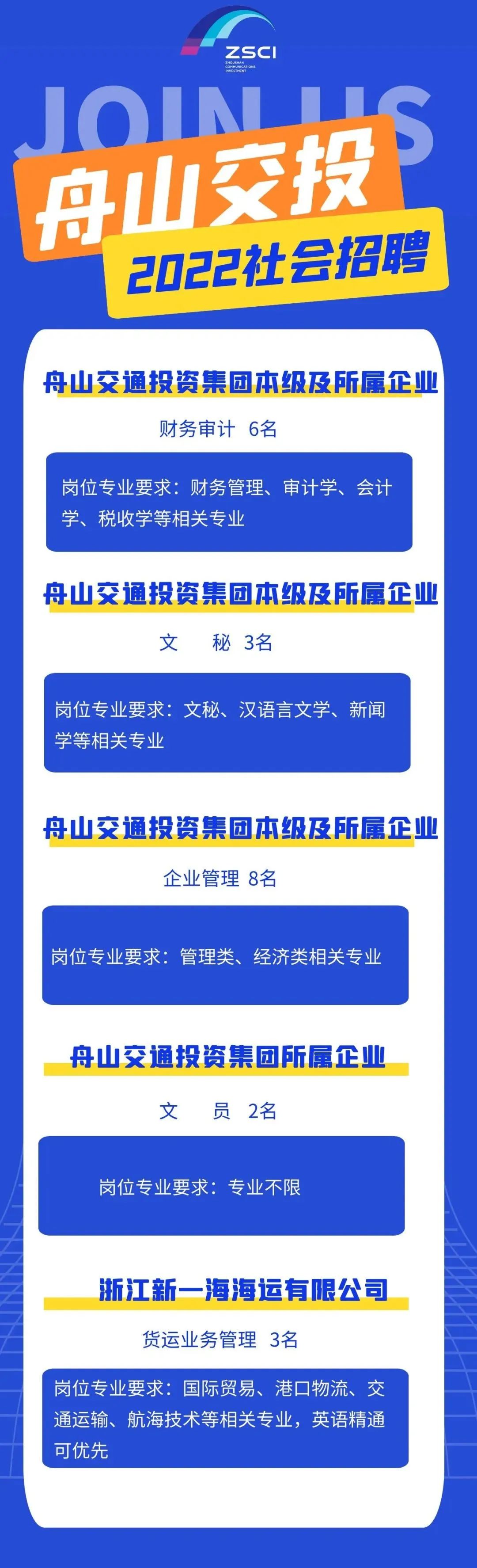 - 舟山交投集團(tuán)2022年招聘開始啦!