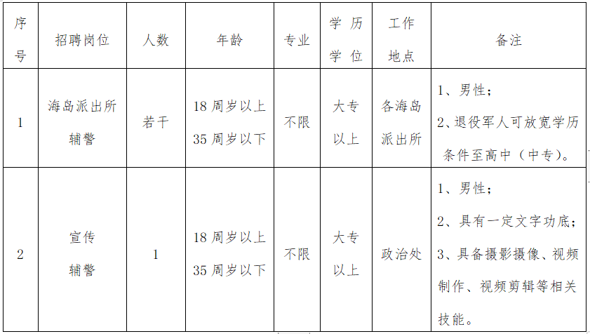 因工作需要,嵊泗縣公安局公開招聘警務(wù)輔助人員(以下簡稱輔警)?,F(xiàn)將有關(guān)情況公告如下,有意者可按規(guī)定條件和程序報考。